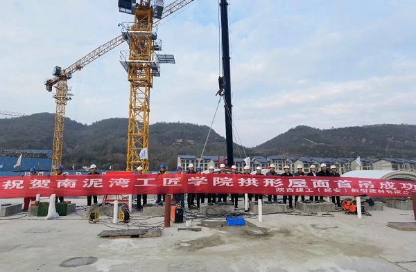 10月23日,由陜建十三建集團(tuán)承建的延安南泥灣勞模工匠學(xué)院項(xiàng)目首個(gè)預(yù)制拱型屋面順利完成吊裝。